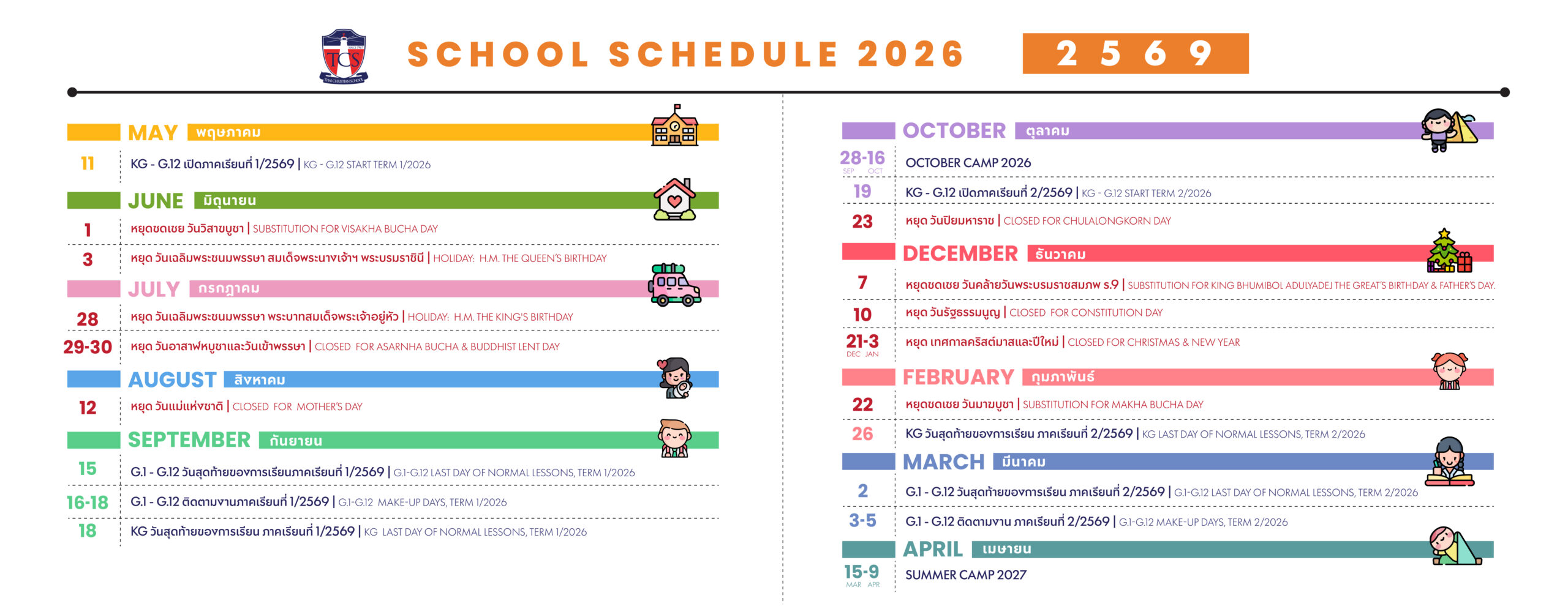 • Pre-K – G.12 English Program, including Thai and Chinese.
